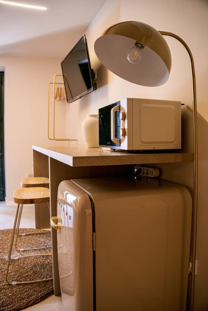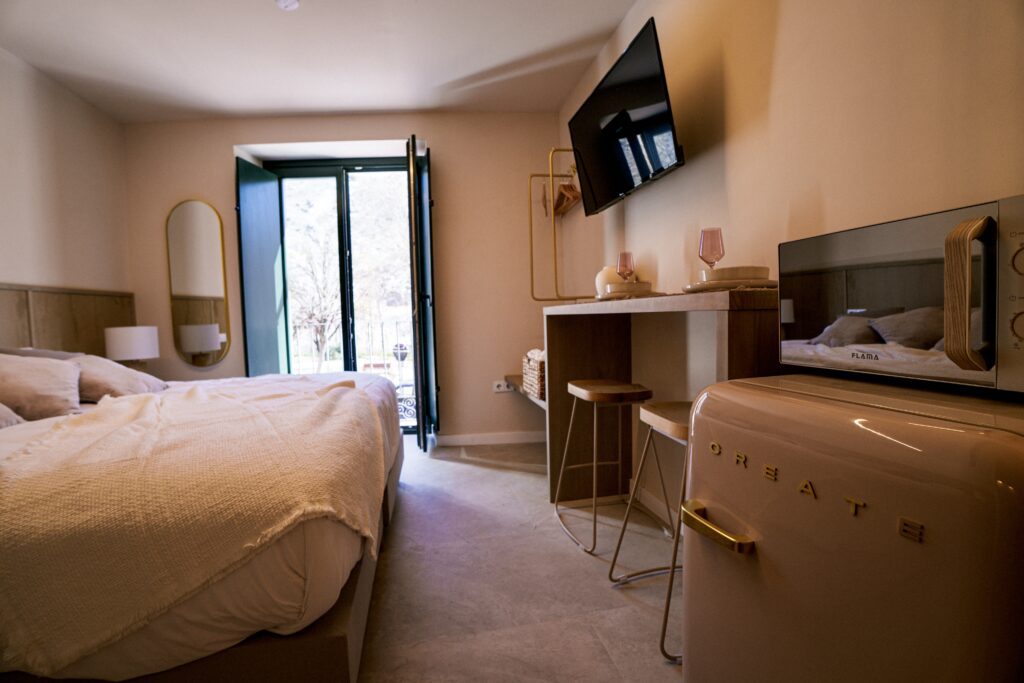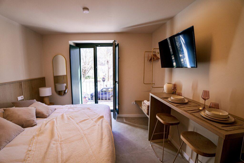 Disfruta de la comodidad y la calma en nuestra suite con balcón. Con un ambiente acogedor y bien equipado, esta suite cuenta con microondas, TV, una mesa con cubiertos para comer, una mini nevera, barras para la ropa con perchas y toallas de calidad. El balcón te permite disfrutar del aire fresco y relajarte mientras contemplas las vistas, ofreciendo el espacio ideal para desconectar y sentirte como en casa.